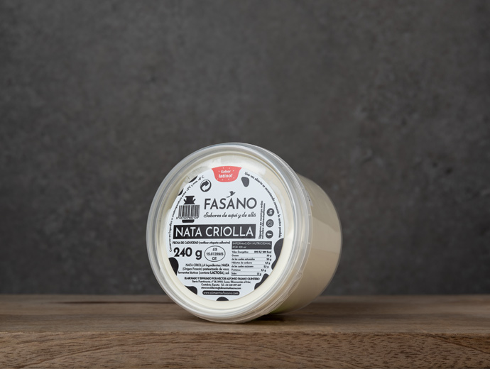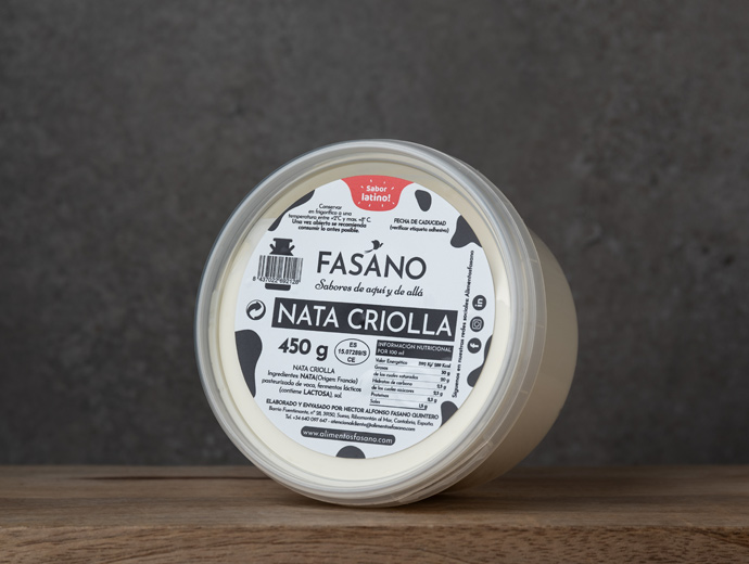 Nuestra Nata Criolla Fasano es el resultado del desnatado de la leche de vaca pasteurizada, con un contenido de grasa del 30%. Es un producto completamente natural, sin aditivos, espesantes, colorantes ni ningún otro ingrediente que mejore su textura, para que puedas disfrutarlo tal como debe ser. En realidad, solo contiene tres ingredientes: nata, fermentos lácteos y sal.